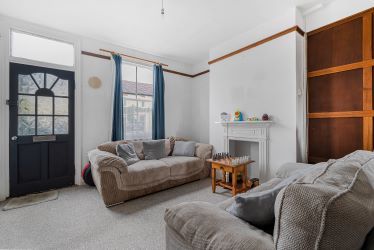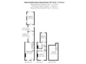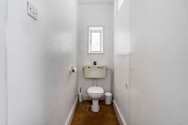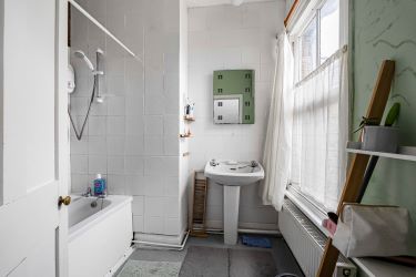 First Floor: Central Landing gives access to; Front Bedroom with fitted carpet, radiator, sash window to front and blocked fireplace; Rear Bedroom with fitted carpet, radiator, single glazed casement window to rear; Cloakroom with wc, lino tiles to floor, window to side; Family Bathroom with lino flooring, radiator, white wc and white wash hand basin and bath with overhead shower and part tiled walls.