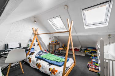 Second Floor: Loft Room which is currently used as a Bedroom with sloping ceilings, a pair of Velux windows to rear, radiator.